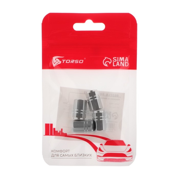 Колпачок на автомобильный вентиль TORSO, хром, набор 4 шт