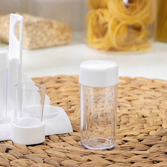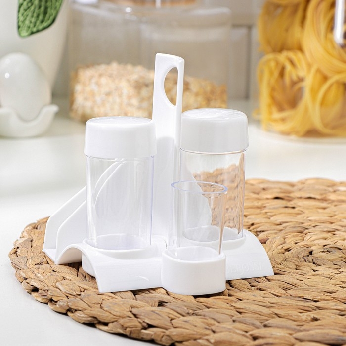 Набор для специй пластиковый «Рондо. Презент», 3 шт, на подставке с салфетницей, цвет белый