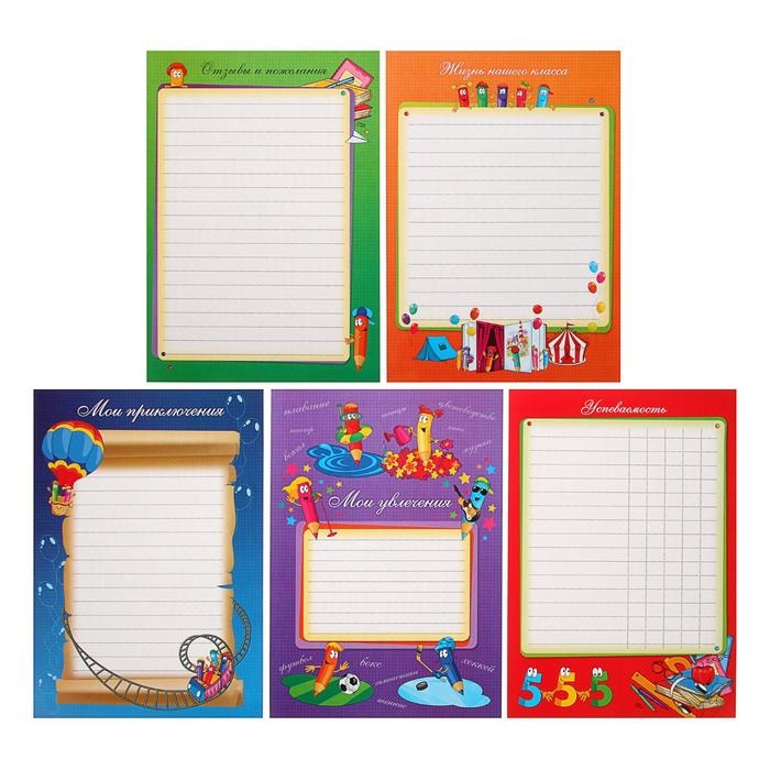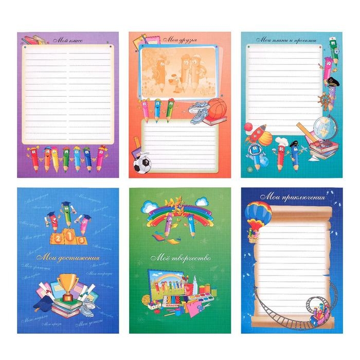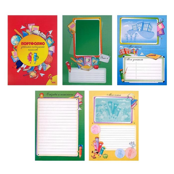 Набор вкладышей для портфолио, "Весёлые карандаши", для учеников начальных классов, А4, 16 листов