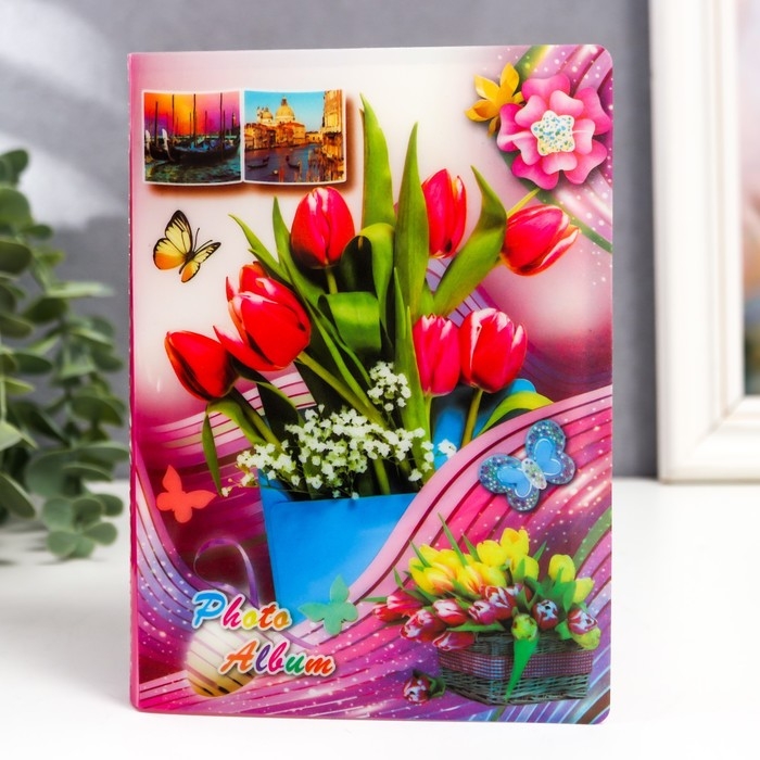 Цветов никогда не бывает много - это всем известный факт. С помощью цветов мы говорим о своих чувствах, благодарим, украшаем и даже удивляем. А как насчёт такого предмета как фотоальбом на 36 фото 10х15 см "Цветочник" МИКС 16,5х12,5х1,5 см? Его дизайн, словно живой гербарий или цветочный остров. Это именно тот аксессуар, который будет приятным подарком на 8 Марта, День рождения и другой праздник, который будет хранилищем для Ваших творческих побед, ярким весенним декором интерьера. Фотоальбом на все случаи жизни!