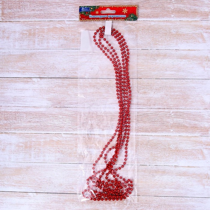 Бусы на ёлку 2,7 м d-10 мм"Грани" красный