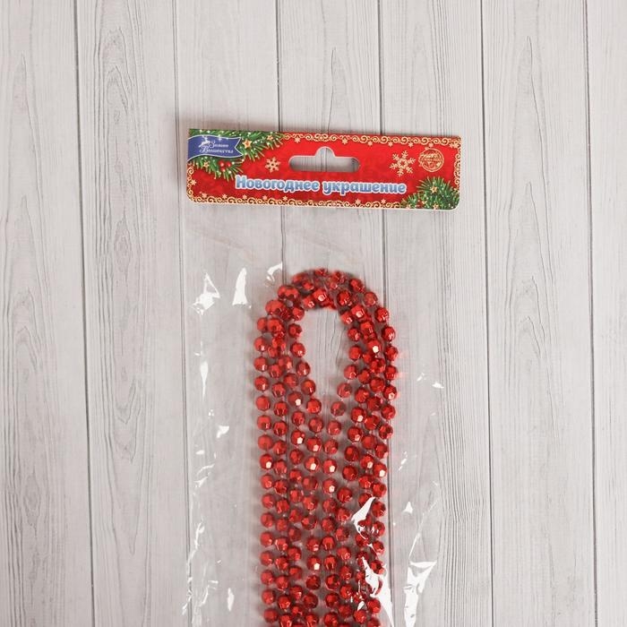 Бусы на ёлку 2,7 м d-10 мм"Грани" красный