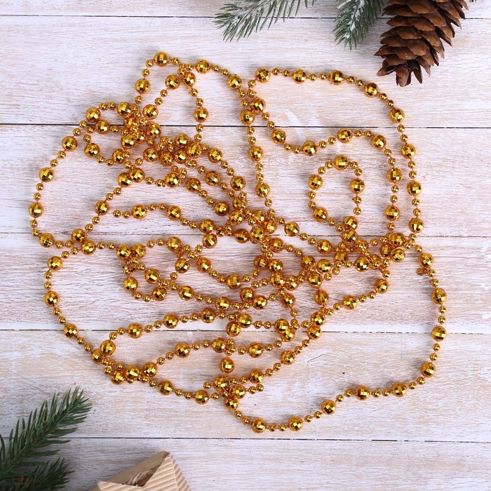 Золотая нить блестящих шариков разного размера преобразит новогоднюю ёлочку и сделает её более нарядной. Бусы на ёлку 2,7 м d-8 мм "Шарики рельефные" микс имеют достаточную длину, что позволит украсить даже крупную ёлку.