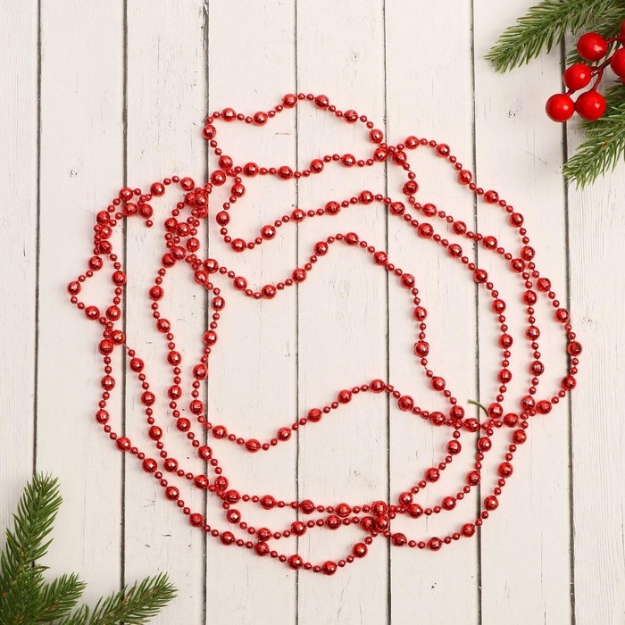 Бусы на ёлку 2,7 м d-10 мм"Грани" красный