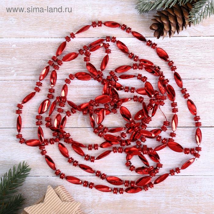 Бусы на ёлку 2,7 м d-10 мм"Грани" красный