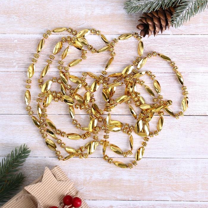 Прекрасные бусы на ёлку 2,7 м "Бочонки и волна" микс, которые преобразят новогодний интерьер. Стильные детали украсят праздник и создадут нужное настроение. Большая длина позволит украсить даже крупную ель или задекорировать стены фигурами или надписями. Немного фантазии, и из такого украшения можно сформировать настоящий шедевр.