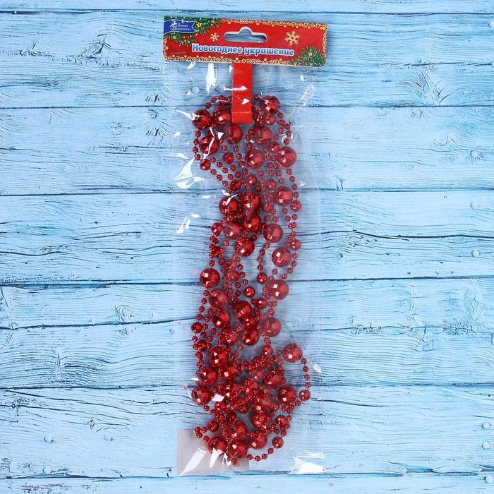 Бусы на ёлку 2,7 м d-10 мм"Грани" красный