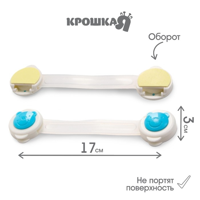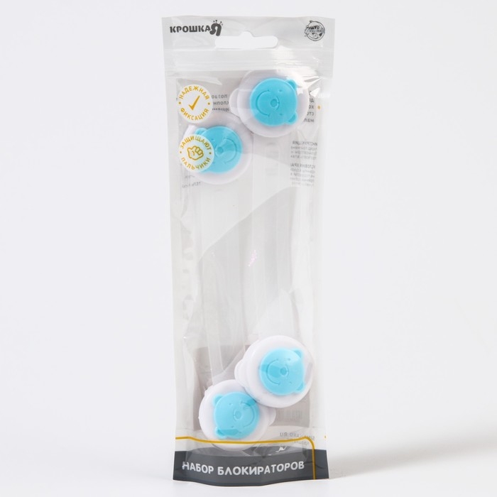 Набор блокираторов для дверей и ящиков, универсальные, 17 см, 2 шт., цвет голубой/белый, Крошка Я