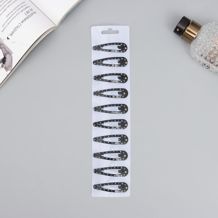 Невидимка для волос "Ночка" (набор 10 шт) чёрно-золотой — идеальные аксессуары для того, чтобы заколоть непослушные прядки или украсить причёску малышки заколочками лаконичной цветовой гаммы.