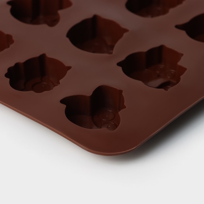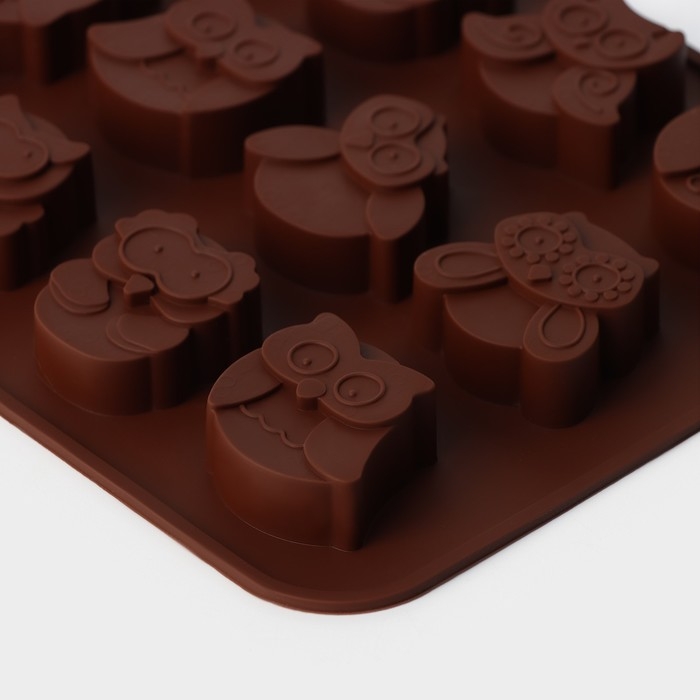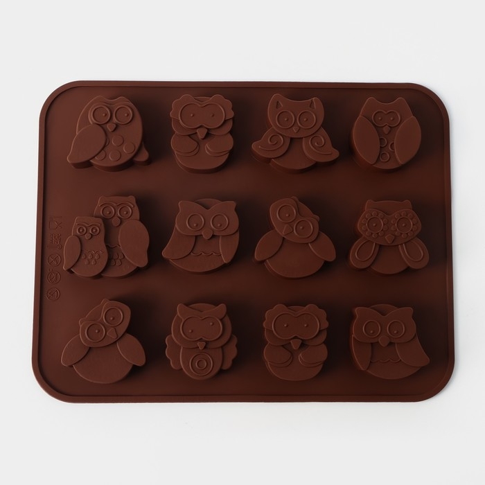Форма для шоколада Доляна «Совы», силикон, 19×15 см, 12 ячеек (3,5×3,5×1,5 см), цвет коричневый