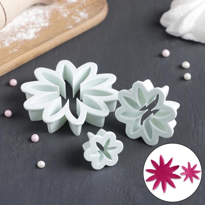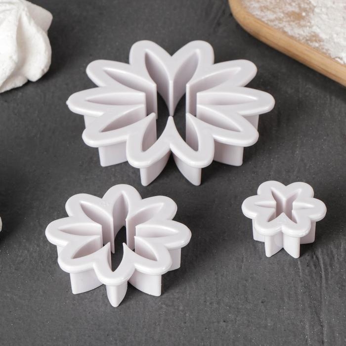 Набор выемок кондитерских для марципана и теста Доляна «Хризантема», 3 шт: d=6,5 см, d=3,5 см, d=2 см