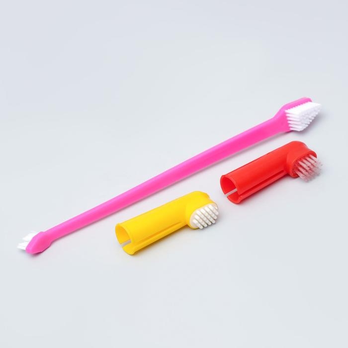 Набор зубная щётка двухсторонняя + щётка напальчник + массажер для десен (набор 3 шт), микс