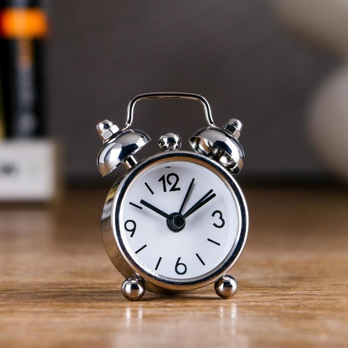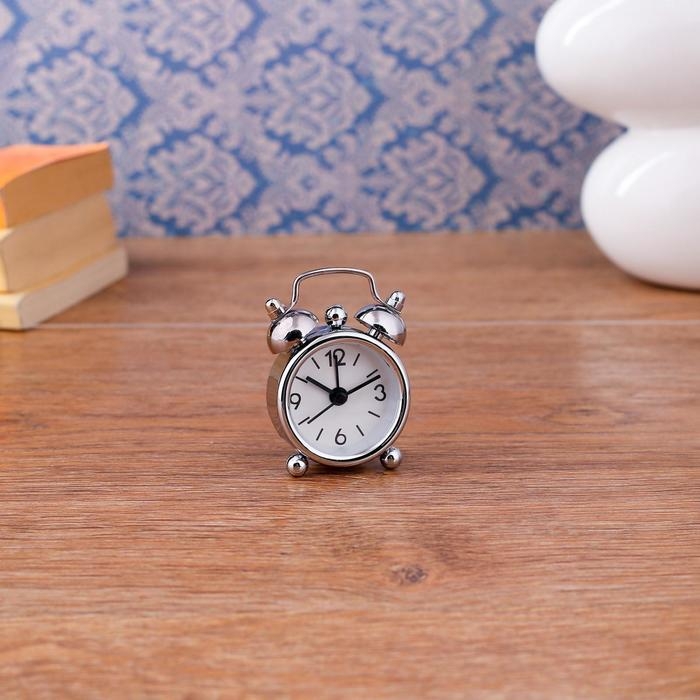 Часы настольные будильник "Классика", циферблат d-4 см, 6.5 х 4.5 см, хром