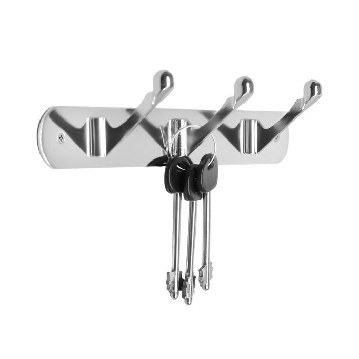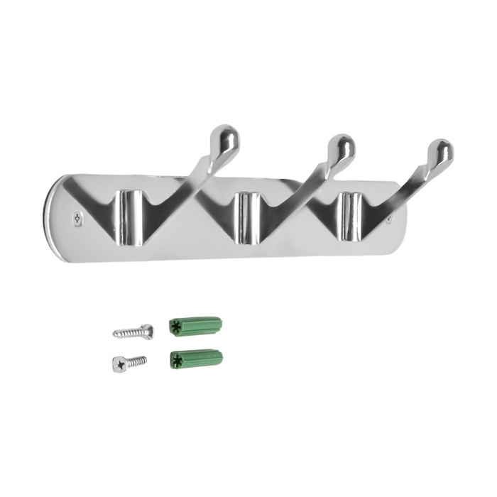 Вешалка ТУНДРА TVT001, металлическая, трёхрожковая, цвет хром