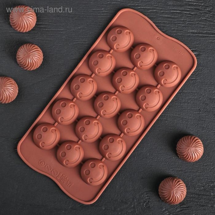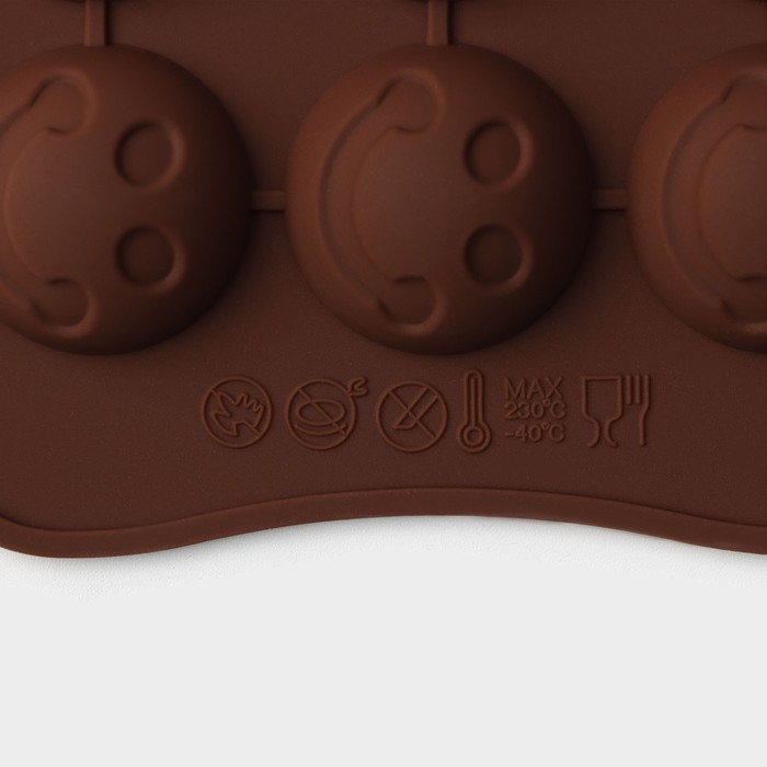 Форма для конфет и шоколада Доляна «Шарик смайл», силикон, 20×10 см, 15 ячеек, цвет коричневый