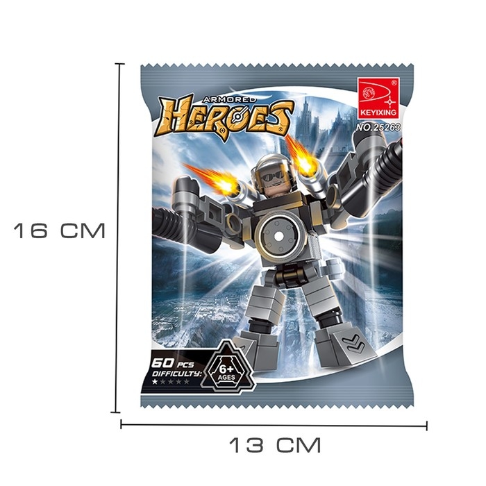 - Набор содержит 60 деталей и позволяет сконструировать космического защитника. Руки, ноги персонажа подвижные, голова поворачивается.