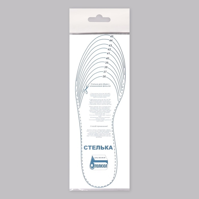 Стельки для обуви, утеплённые, фольгированные, с эластичной белой пеной, универсальные, р-р RU до 48 (р-р Пр-ля до 46), 30 см, пара, цвет белый