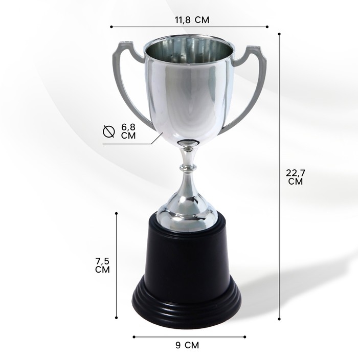 Кубок 036В, наградная фигура, серебро, подставка пластик, 22,7 × 11,8 × 9 см.