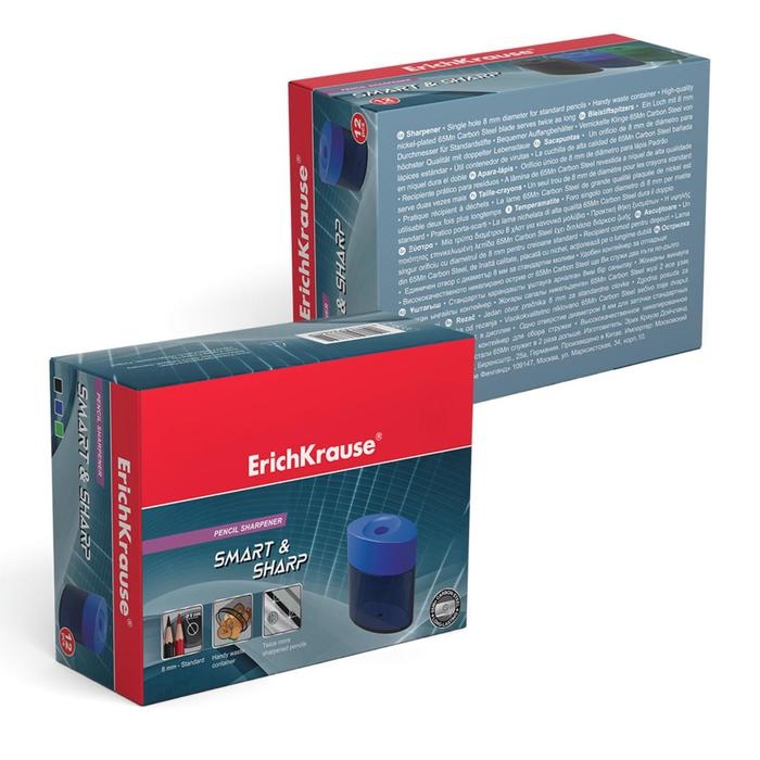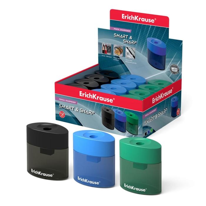 Точилка 1 отверстие Erich Krause SMART & SHARP, с контейнером, отверстие диаметром 8 мм, микс