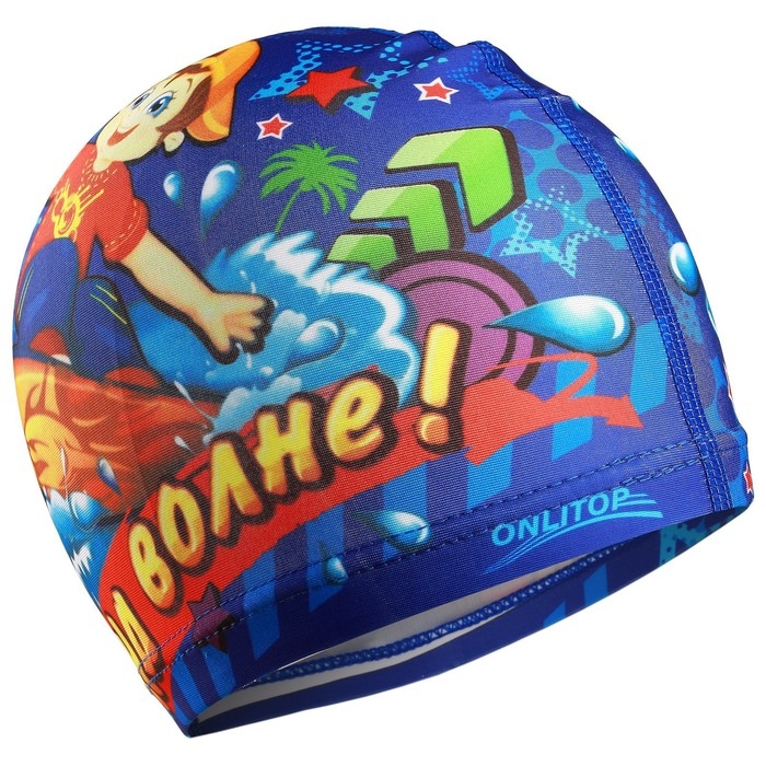 Шапочка для плавания детская ONLYTOP «На волне», тканевая, обхват 46-52 см
