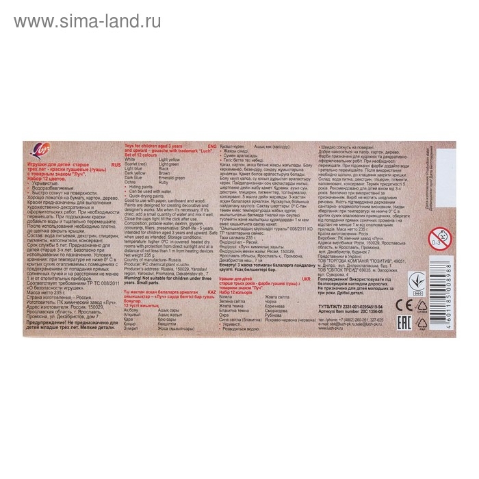 Гуашь 12 цветов х 15 мл ZOO, блок-тара поможет вашему ребёнку создавать красивые яркие картинки, выдумывать невероятные сюжеты и воплощать их в реальность, развивая цветовое восприятие, зрительную память, воображение, мелкую моторику пальцев, ассоциативное, аналитическое и творческое мышление.