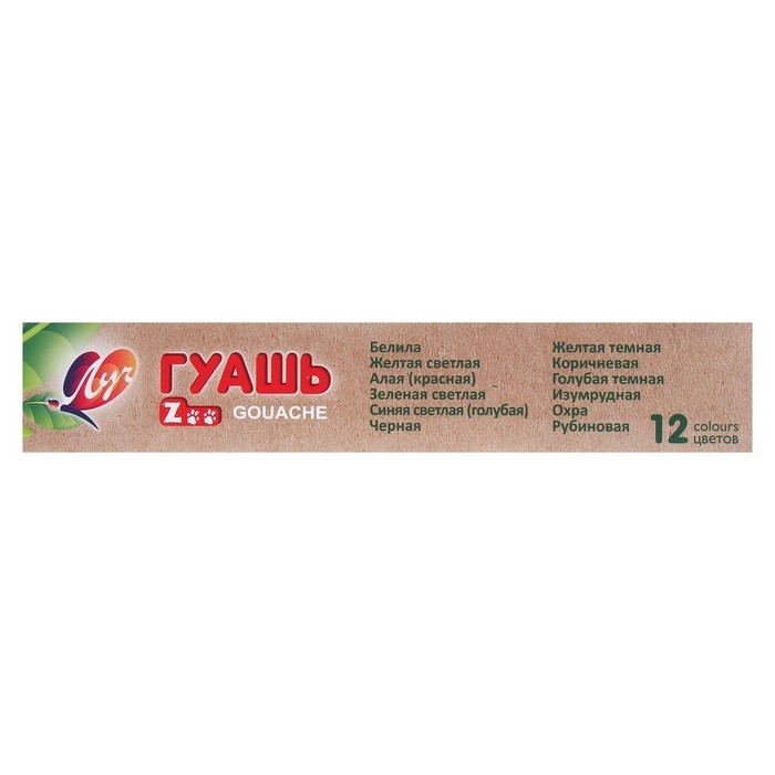 Гуашь 12 цветов х 15 мл ZOO, блок-тара