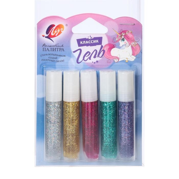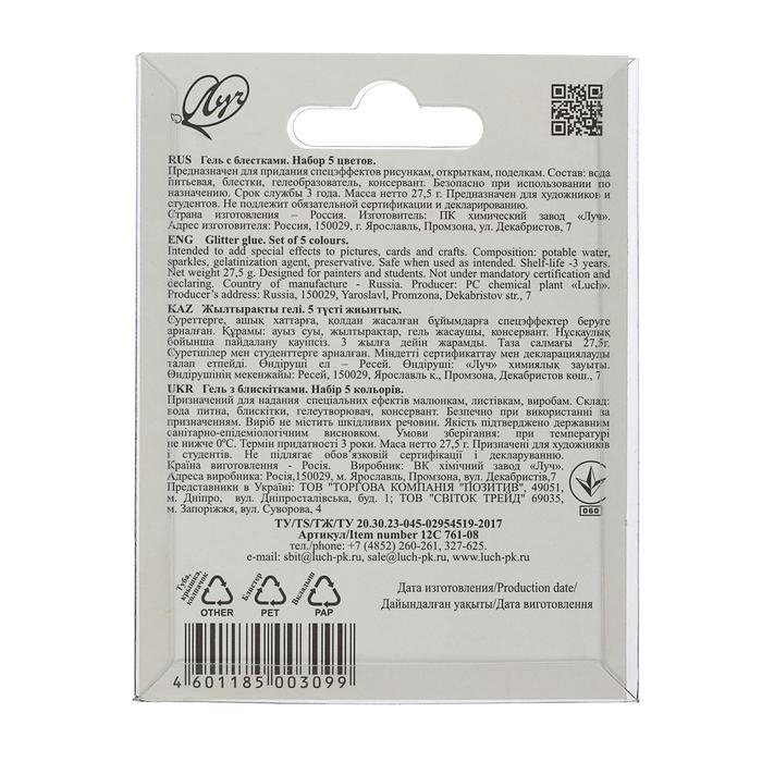 Гель с блёстками "Луч", 5 цветов х 5 мл, "Блеск"