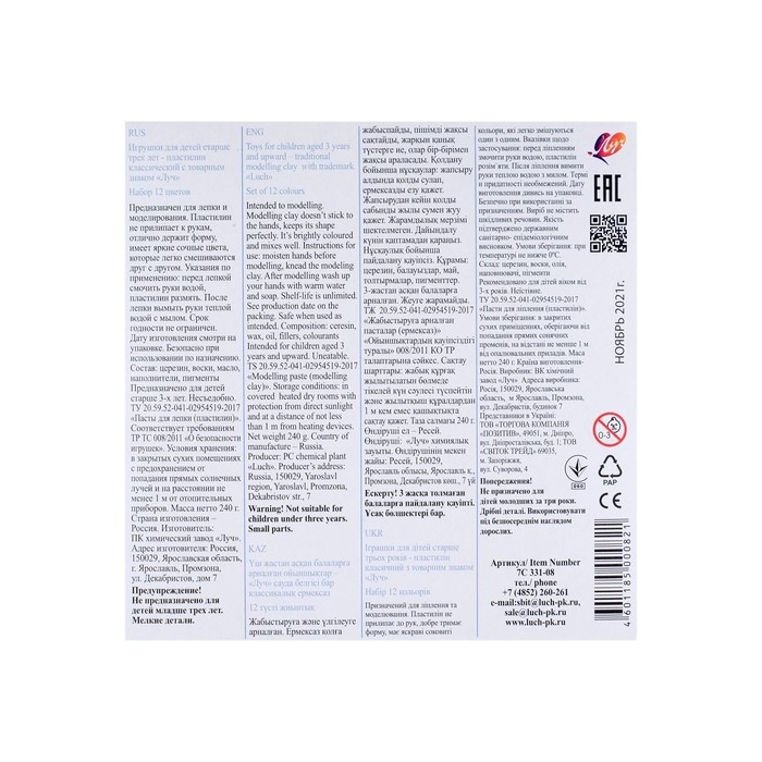 Смоделировать миниатюры чудес света совсем не сложно с пластилином «Классика». Продукт изготовлен из высококачественных компонентов, обладает яркими цветами, легко лепится и не прилипает к рукам. Держит форму скульптур и идеально подходит для работы мультипликаторов. Соответствует европейским (знак СЕ) директивам безопасности. Вес бруска пластилина 20 гр.