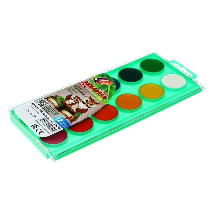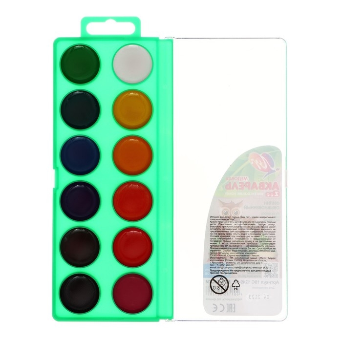 Краски акварельные 12 мл, в металлической тубе, в картонной коробке, 12 цветов