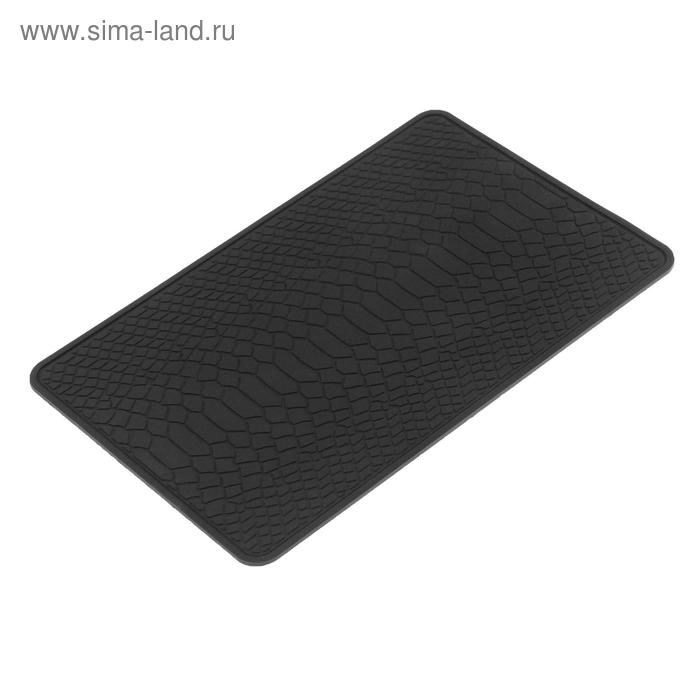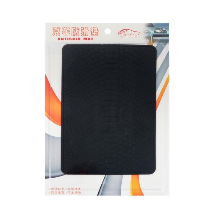 Противоскользящий коврик на приборную панель выполнен из легко моющегося и мягкого материала. Изделие плотно держится на любом покрытии приборной панели, а так же защищает её от повреждений. Аксессуар надёжно удерживает предметы при резких манёврах и поворотах.