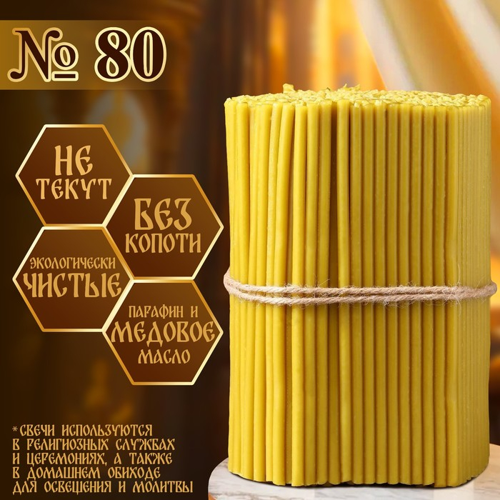 Свечи церковные медовые №80, упаковка 2кг, парафин + медовое масло