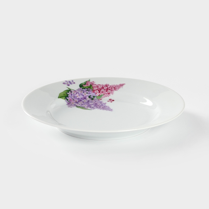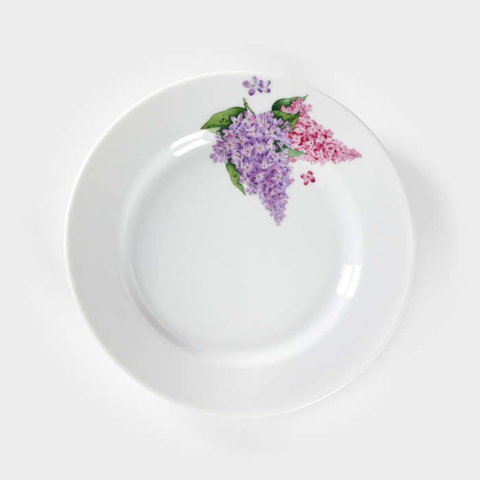 Тарелка фарфоровая «Сирень», d=20 см, белая