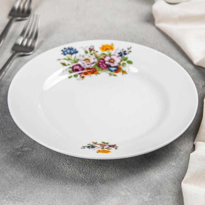 Тарелка фарфоровая «Букет цветов», d=20 см, белая