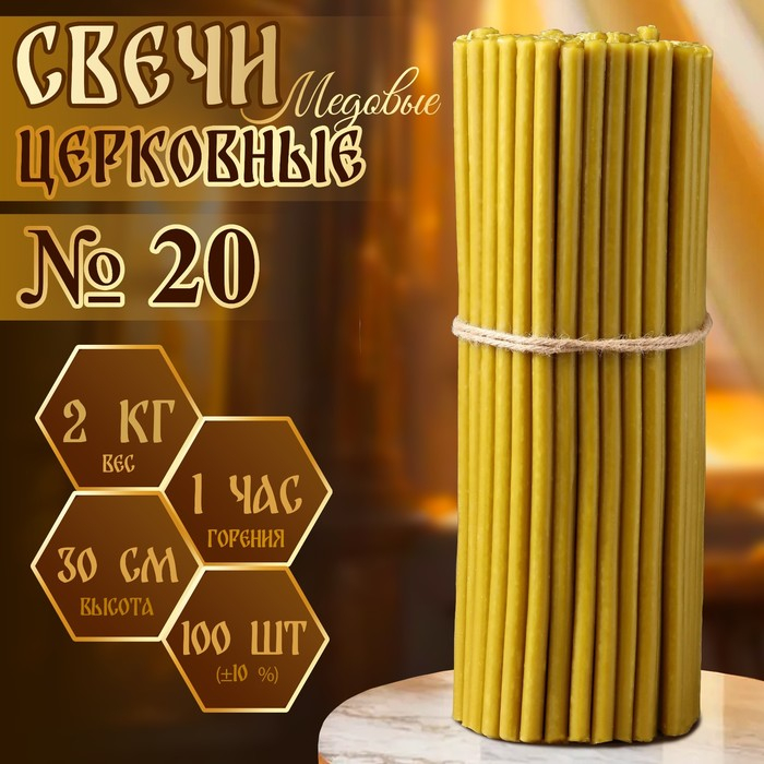 Свечи церковные медовые №20, упаковка 2кг, парафин + медовое масло