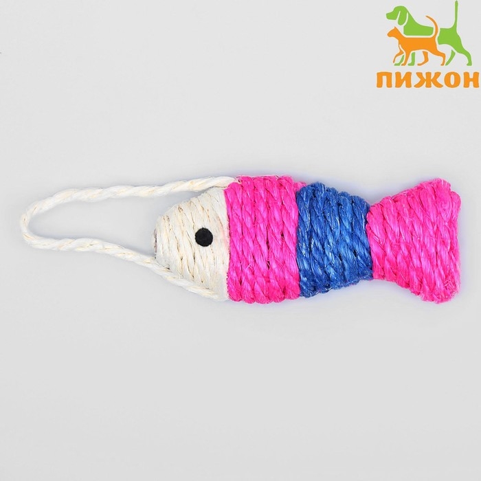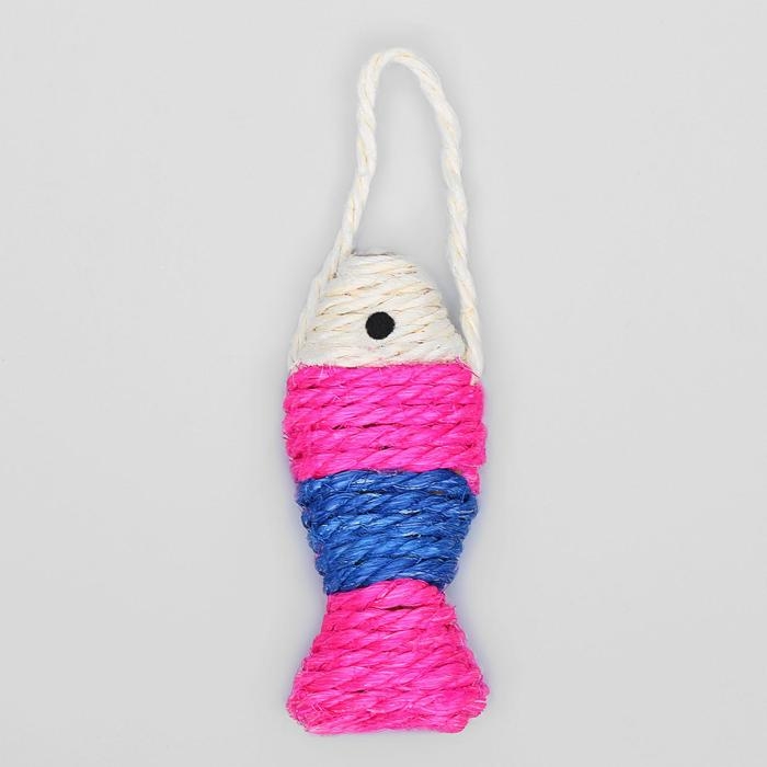 Игрушка-когтеточка сизалевая "Рыбка-полосатик", 11 см, белая/розовая/фиолетовая