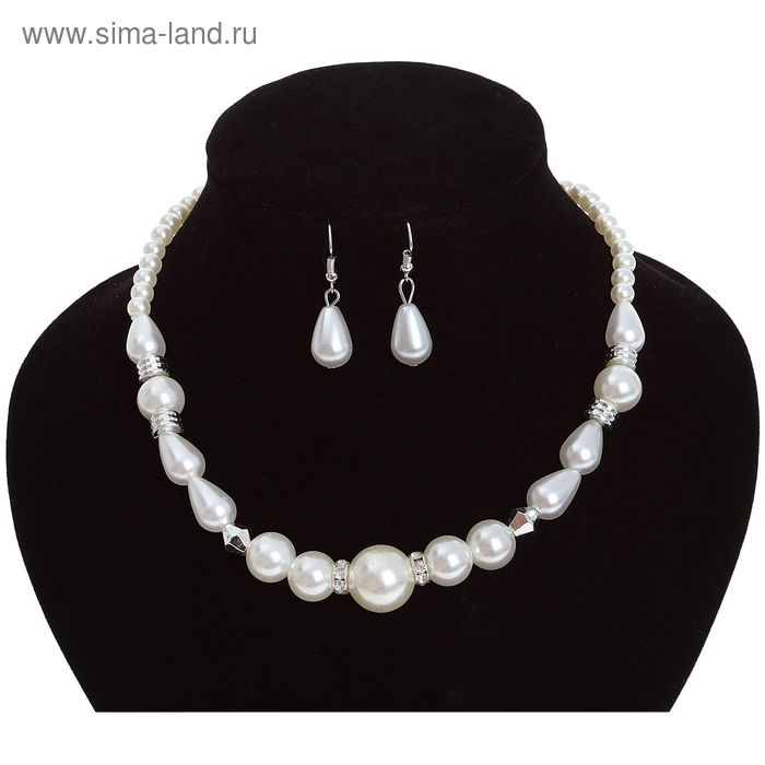 Набор 2 предмета: серьги, бусы «Жемчужная нить», цвет белый в серебре, 45 см