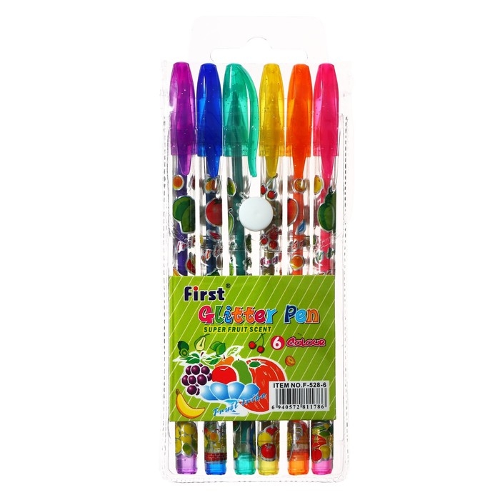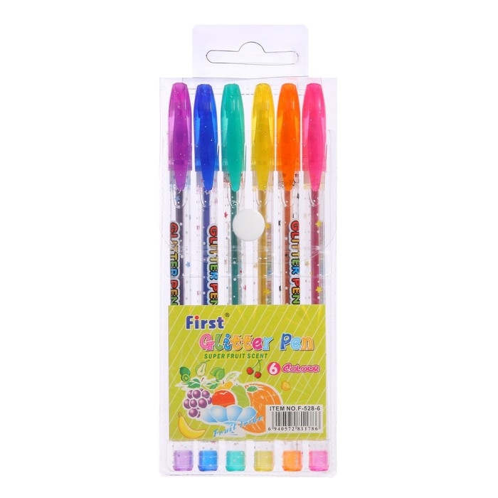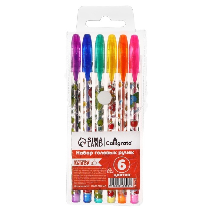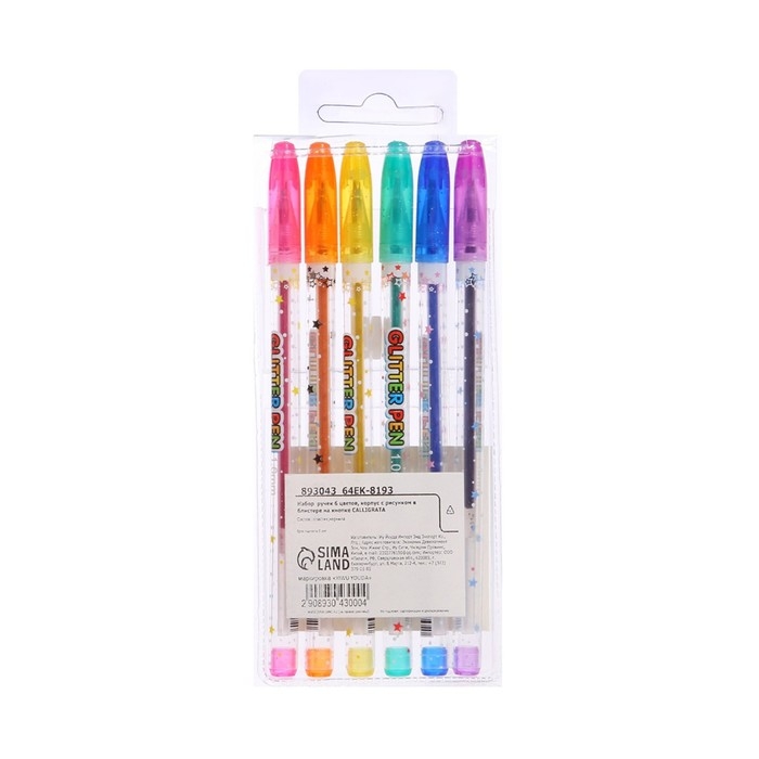 Набор гелевых ручек, 6 цветов, металлик, с блёстками, в блистере