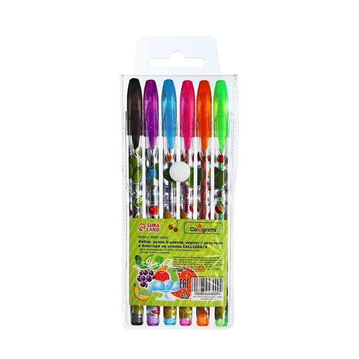 Набор гелевых ручек, 6 цветов, металлик, корпус с рисунком, в блистере на кнопке