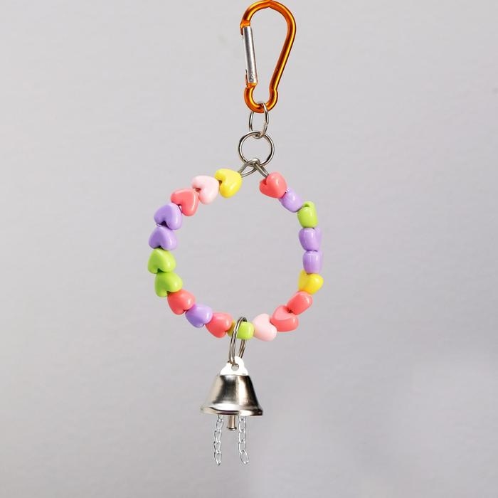 Игрушка для птиц "Кольцо из бусин" с колокольчиком, 6 х 17 см