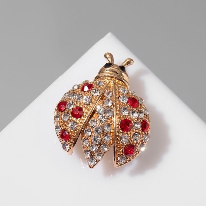 Брошь «Божья коровка», цвет красно-белый в золоте
