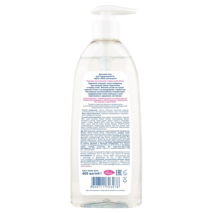 Гель для подмывания младенцев Моё СОЛНЫШКО гипоаллергенно, 400 мл
