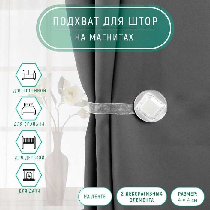 Подхват для штор «Ромб блестящий», 4 × 4 см, цвет белый