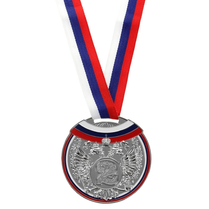 Медаль призовая 014, d= 7 см. 2 место, триколор. Цвет серебро. С лентой
