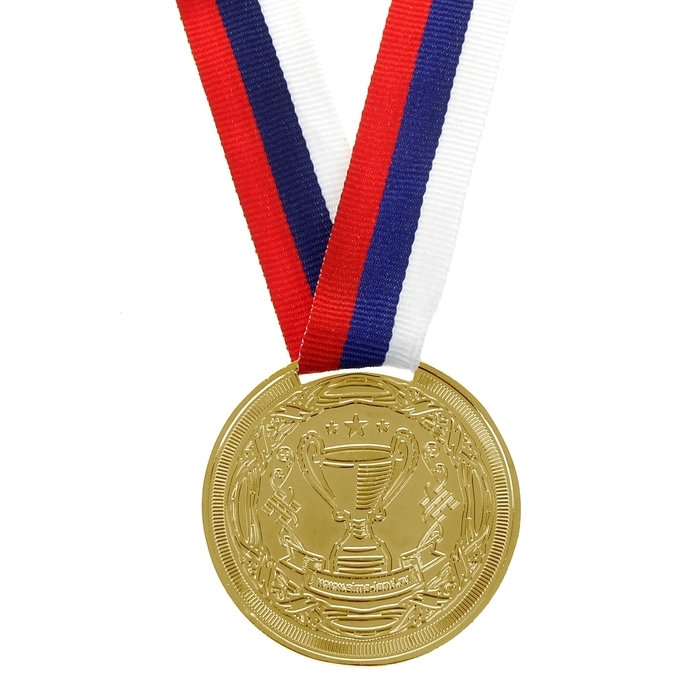 Медаль призовая 013, d= 5 см. 1 место, триколор. Цвет золото. С лентой
