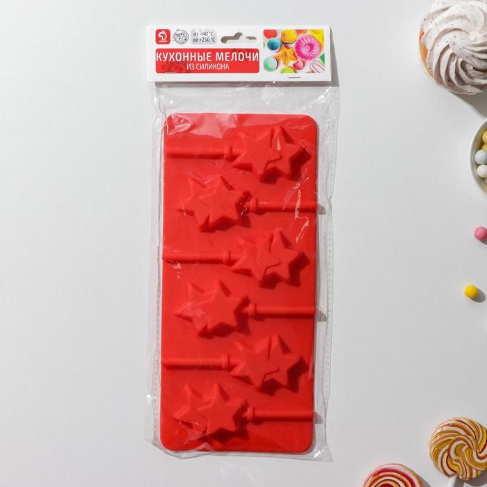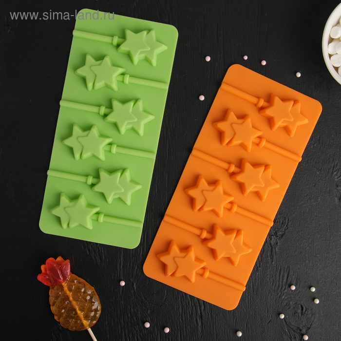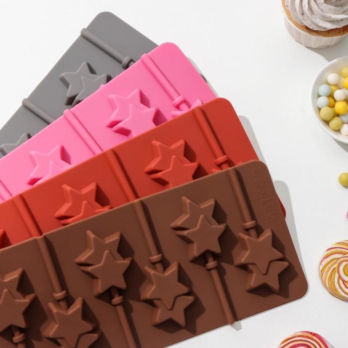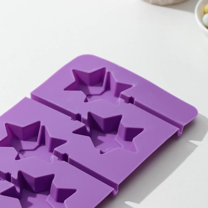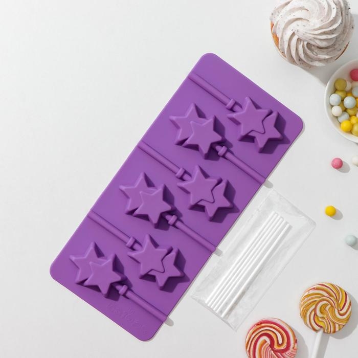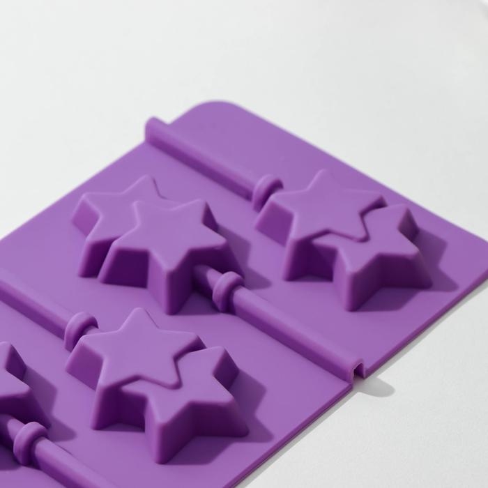 Форма для леденцов новогодний Доляна «Звёзды», силикон, 24×11×1 см, 6 ячеек (5,2×4 см), с палочками, цвет МИКС