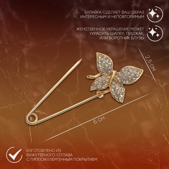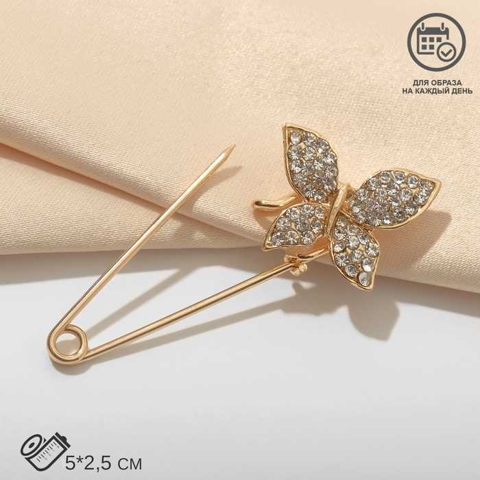 Булавка «Бабочка», 5 см, цвет белый в золоте