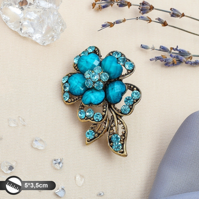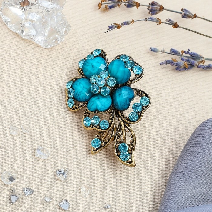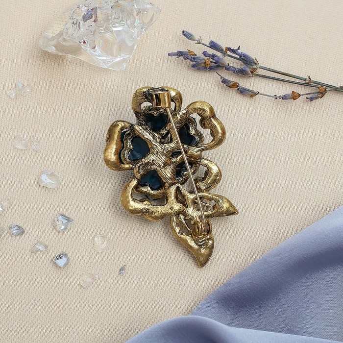 Брошь «Цветок желаний», цвет морской в чернёном золоте
