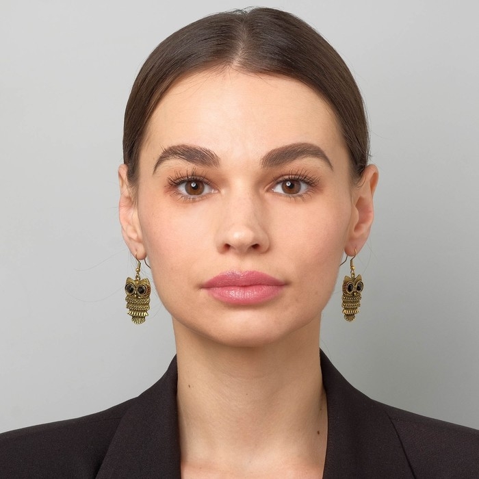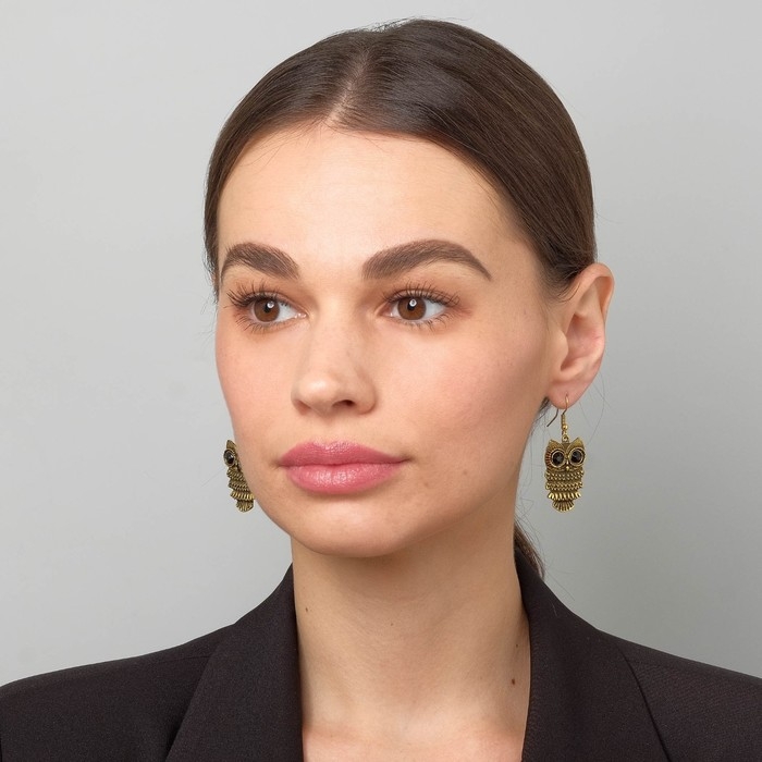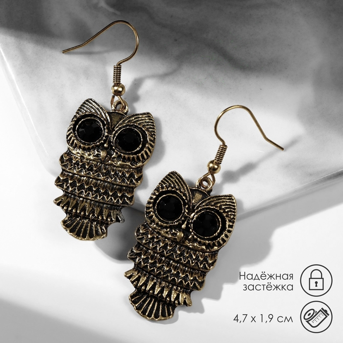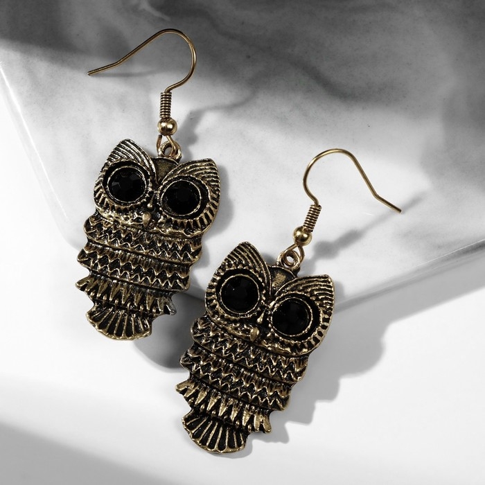 Серьги металл Art совушка, цвет чёрный в чернёном золоте