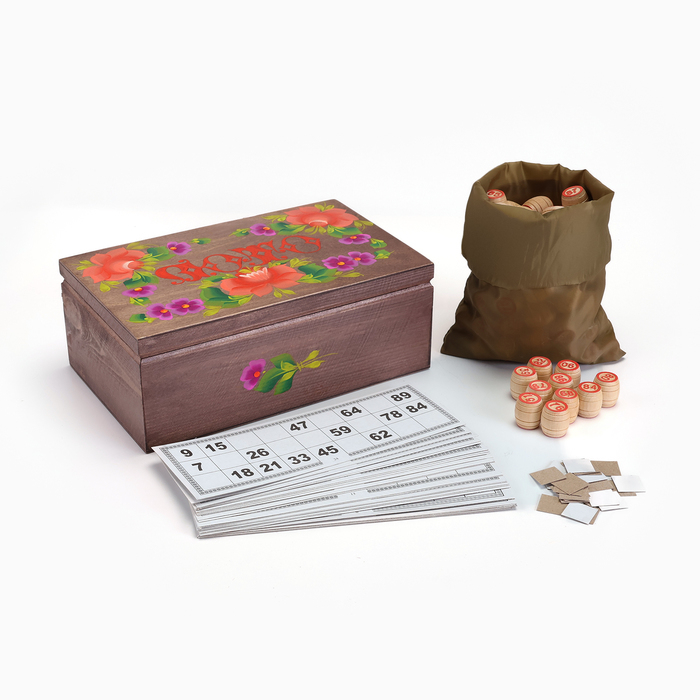 Русское лото деревянное, игра настольная "Роспись", в подарочной шкатулке, с бочонками