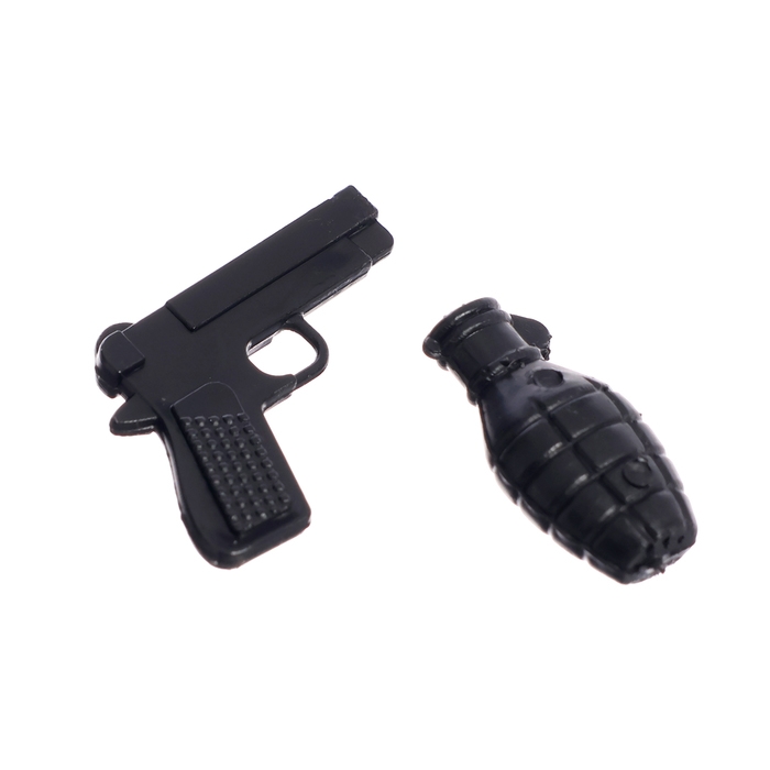 Игрушка оснащена заводным механизмом, благодаря которому фигурка двигается. В комплект также входит пистолет и граната.